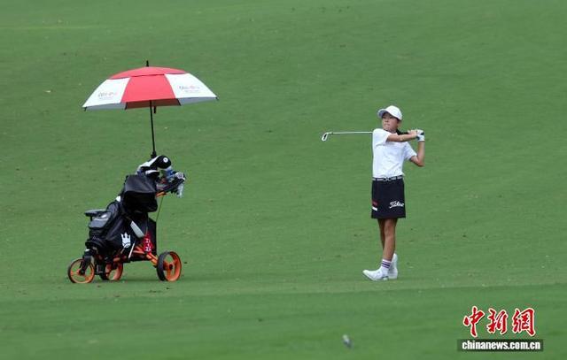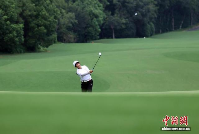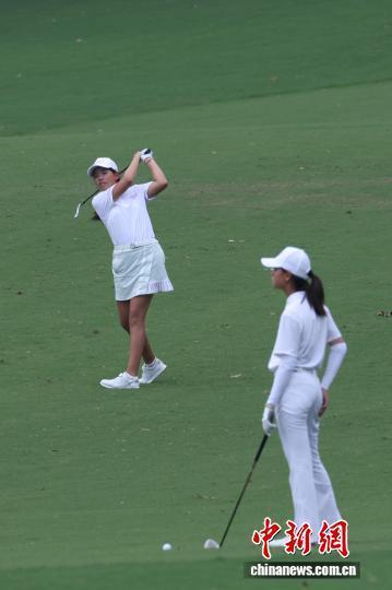 图为参赛球员在比赛中挥杆。中新社记者 泱波 摄
